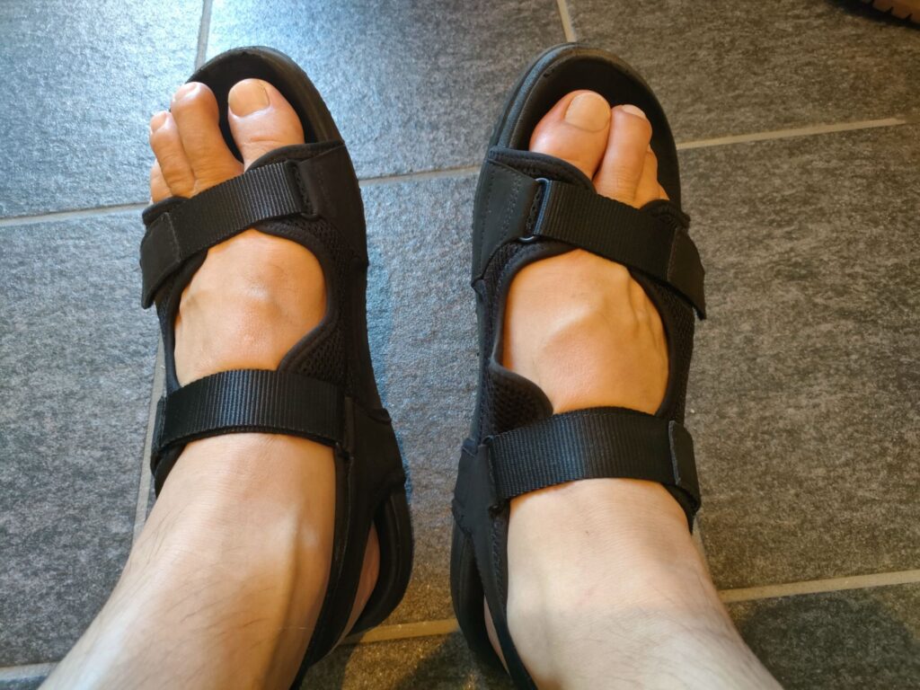 購入した後、普段履きはすべてこのシダスのリカバリーサンダルを履いていました。底は硬めではありますが、足裏の土踏まずの部分がしっかりサポートされており、歩いていて足裏をマッサージされているような適度な刺激が気持ちよく、確かに長時間はいていても足が疲れることはありませんでした。足底筋膜炎の痛みもなく、気にすることなく歩き続けることができます。
