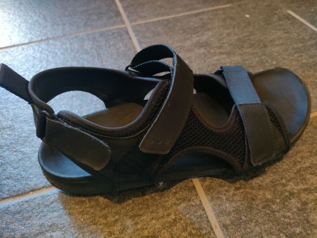 このサンダルを履く際、3つのバンドで足を固定する感じになります。すべてマジックテープとなっており、その脱着による耐久性は今のところわかりませんが、装着する際は真ん中のマジックテープのみ外して脱着をしているので、慣れてくると履きにくさは感じなくなります。